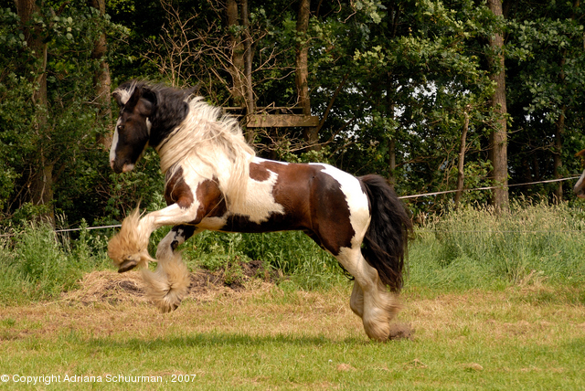 Ik, Sylvia, ben de trotse eigenaresse van Mc.Murphy, een zwart/bonte altijd vrolijke tinkerruin afkomstig uit engeland. Hij is geboren in 1999 en ik ben z’n 3e eigenaar.