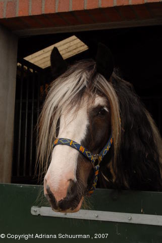 Het is een heerlijk paard om mee te kroelen, staat meteen vooraan bij de ingang van de wei als hij me gehoord heeft om te kijken of er nog wat moet gebeuren of dat ik nog wat lekkers heb. Onder het zadel werkt hij hard, maar op zijn tijd is het ook een eigenwijs, opstandig paardje en lekker ondeugend, maar daarvoor ben je ook een tinker.