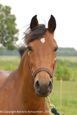 Het is een erg pittige pony en daar kwam ik naar een paar keer rijden wel achter. In het begin lag ik er meer naast dan dat ik erop zat, maar mede door de goede lessen van Dinant is dat probleem al grotendeels opgelost. We rijden nu sinds april 2006 bij Pc de Schansruiters in Zieuwent en hebben nog elke week priveles van Dinant. Verder zijn we in de zomer 2006 begonnen met het rijden van wedstrijden, het gaat nog een beetje moeizaam maar goed daarvoor lessen we dus ook. Verder gaan we regelmatig buitenrijden met Janet (& Nancy) , Sylvia (& Murphy) en Lisette (&Nora) en dat vinden we allebei erg gezellig.